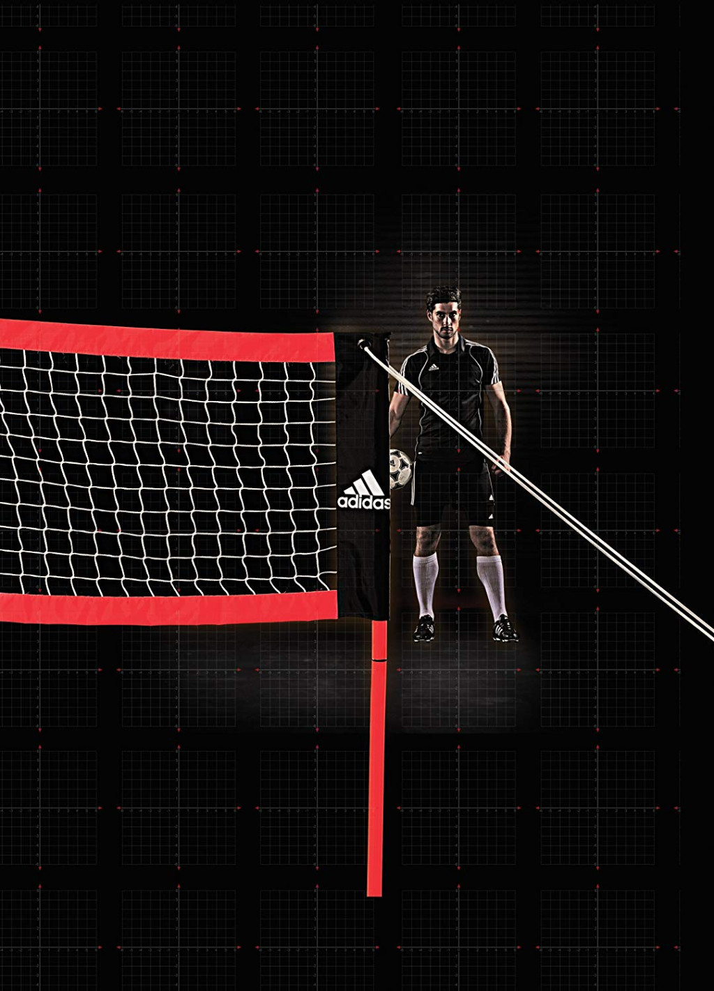 Az adidas 450x50 cm méretű edzőhálót ajánlott 180 cm magasra állítani a szlalomrudakhoz rögzítve