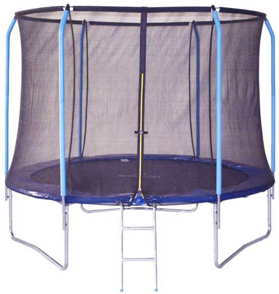 305CM ÁTM VÉDŐHÁLÓS TRAMBULIN LÉTRÁVAL, BIZTONSÁGI KERETTEL A VÉDŐHÁLÓ FELFÜHGGESZTÉSÉRE-130KG TERHELHETŐSÉGGEL