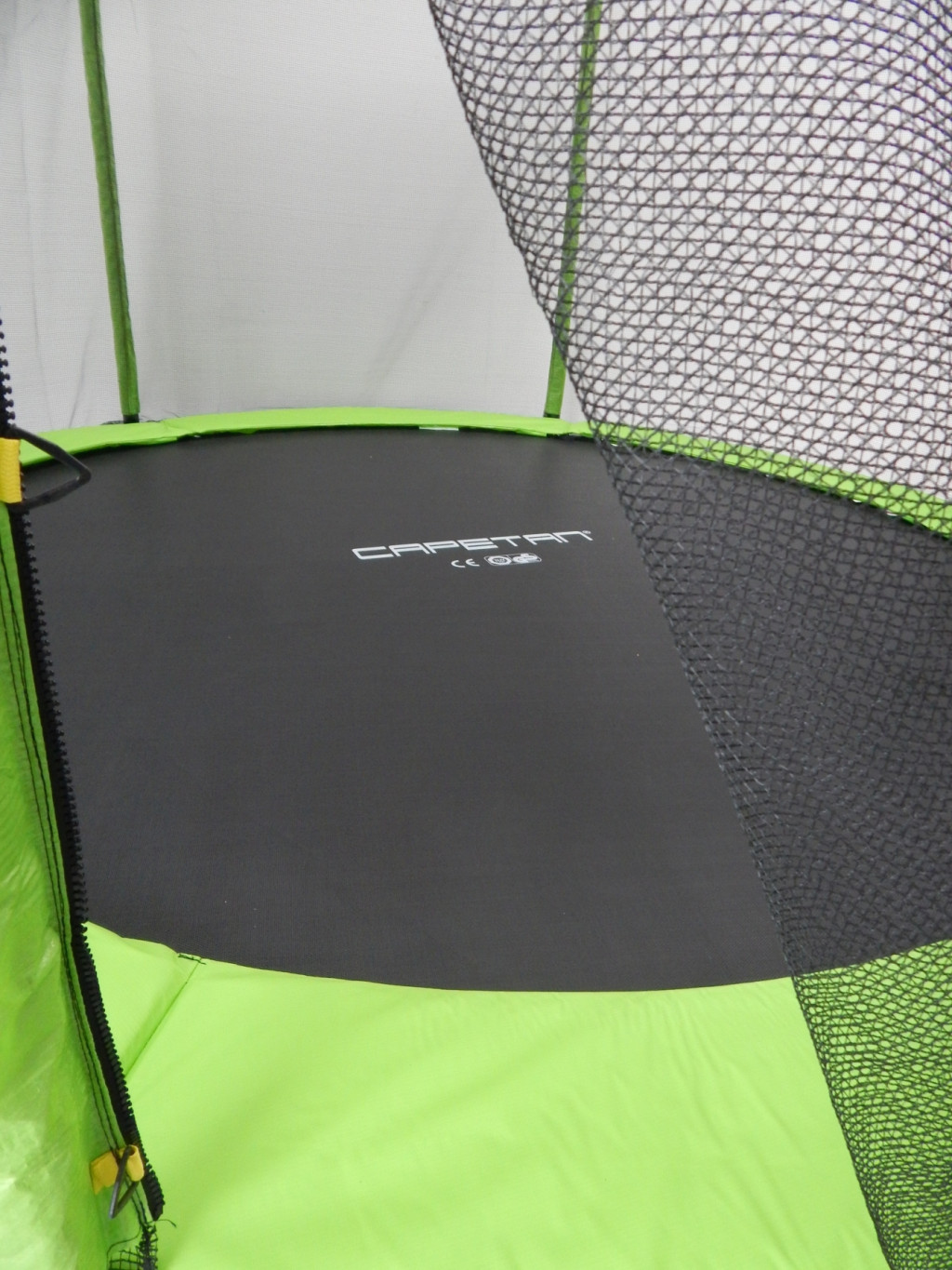 Technikai adatok - Capetan Selector Lime védőhálós trambulin 397cm átmérővel, 80db rugóval, 180Kg terhelhetőséggel. A trambulin keret csatoló extra elem révén a trambulin össze- és szétszerelése sokkal egyszerűbbé válik a hagyományos modellekhez képest.