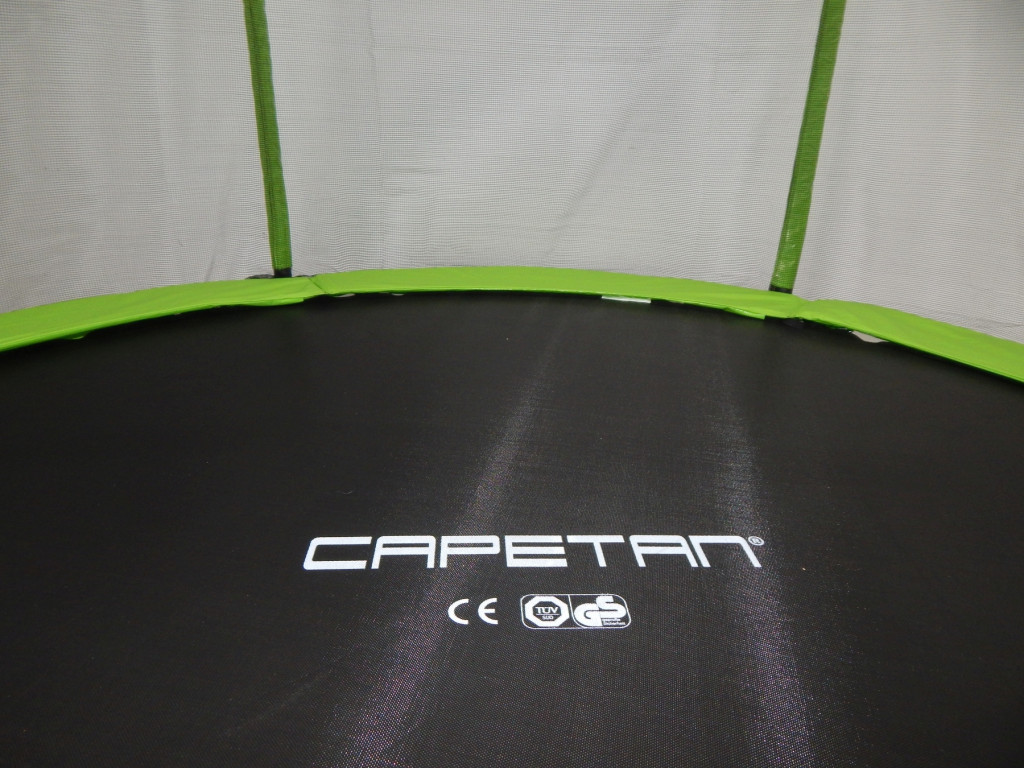 Capetan® Selector Lime | Kültéri trambulin prémium minőségben (397cm 180Kg terhelhetőséggel - hosszú védőháló tartóoszlopokkal, extra megerősített váz rögzítő T elemmel kialakított, kiemelkedően magas védőhálóval, vastag szivaccsal , 80 cm magas ugr Részletek