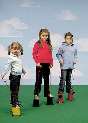 Különböző színekben elérhető műanyag lépegető talpak, melyeknél a gyermek a dobozon áll és az azon átfüzőtt madzagot a kezéban tartva koordinálja lépéskor a kéz és láb munka összhangját. Nem egyszerű feladat a döntést a lábemelésről a láb emelését és közben a megfelelő oldali kézben a madzag megfeszítését és kar emelését végrehajtani, majd mindezt váltakozva összehangoltan végezni azaz járni a dobozokon.