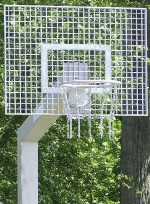 - A palánk 50mm vastag tüzihorganyzott rácsos, zajelnyelő, kültéri időjárásálló kivitelű anyagból készül, vandál játéknak is ellenáll, 120x90cm méretben. A kosárgyűrű tüzihorganyzott anyagból készül, lánchálóval szerelt kivitel. A teljes szerkezet vandálbiztos kivitelű.