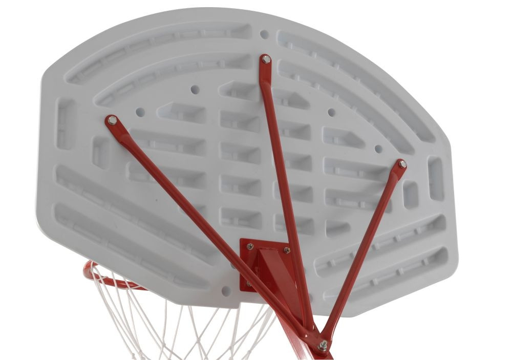 A palánktartó szerkezet 50x50mm profilú fémből készül, egyszerű kallantyúval állítható magasság. Az oszlop két db keresztmerevítővel rendelkezik a talpazatnál. A palánk 30mm vastag erős szintetikus anyagból készül. Hátsó oldalán bordákkal erősített, továbbá a megfelelő merevségeta hátoldalra erősített fém rudak adják meg.
