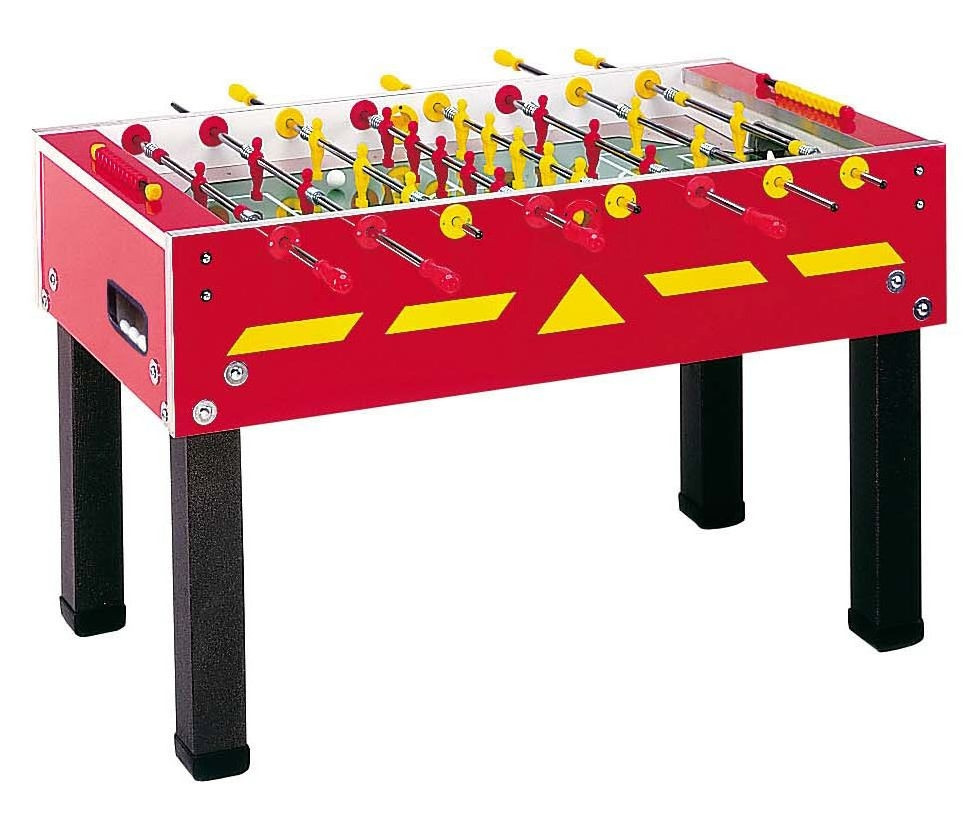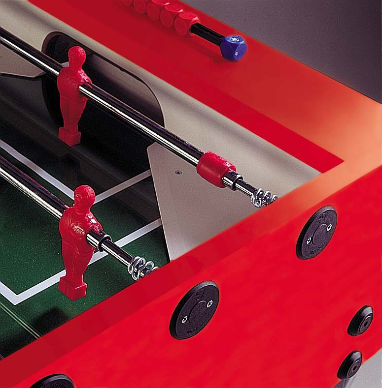 A játéktér laminált felülettel burkolt, melyet időjárásálló ragasztóval fixálnak.A játéktér felfestései speciális napfény szívó hatásának ellenálló festékkel történnek. Az asztal rudazatai golyóscsapágyas tokban gördülnek, melyek jelenléte gyorsabbá teszi a játékot anélkül hogy a játékos csuklóját megerőltetné.