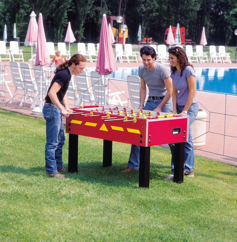 - Minden időjárási körülménynek ellenálló kültéri csocsóasztal, az acél elemek rozsda elleni kezeléssel ellátottak, közülteknek, iskoláknak, óvodáknak, kültéri játék gyanánt tökéletes választás lehet. Strandok kempingek figyelmébe ajánljuk.