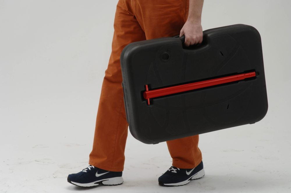Összecsukáskor az egyébként vízzel vagy homokkal feltölthető lábazat kofferként funkcionál, kialakított vájataiba bepattinthatjuk a streetball állvány alkatrészeit, abban tárolhatjuk, szállíthatjuk azt.