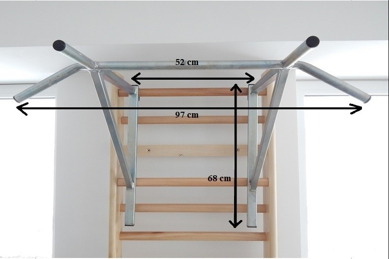 Húzódzkodó tolódzkodóval bordásfalra akasztható kombinált, ezüstös szürke felülettel Részletek