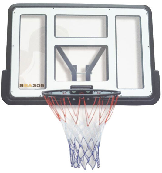 Kosárpalánk policarbonát áttetsző 110 x 75 cm méret 45cm gyűrűvel, vállvédővel