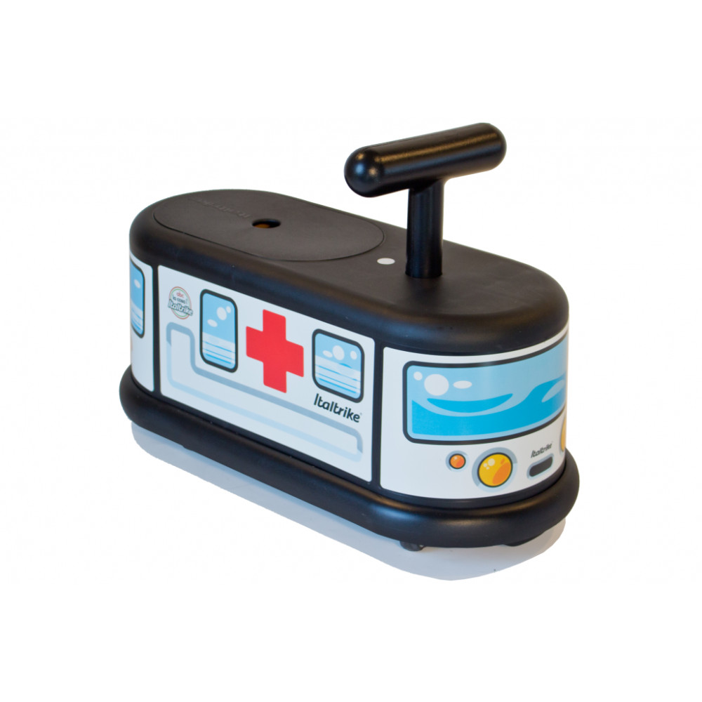 La Cosa lábbalhajtós kiskocsi - MENTŐ - , lakásban is használható a kerekek nem hagynak nyomot, sima kemény tapadásmentes felületeken kültérben beltérben könnyedén gurul , apró gumirozott kerekekkel kialakított (4 görgös), az első kerekek 360 fokban fordulnak ezért igen fordulékony könnyen kormányozható.Titkos rakodó rekesz található az ülés alatt az apró játékoknak , legömbölyített oldal felületei révén nem sérülnek a bútorok ha a kisgyermek neki kormányozza.