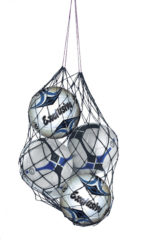 Labdatartó háló gépikötött necc zsinór háló 10 db No.5 labdához, PP anyag, kék-fehér szín