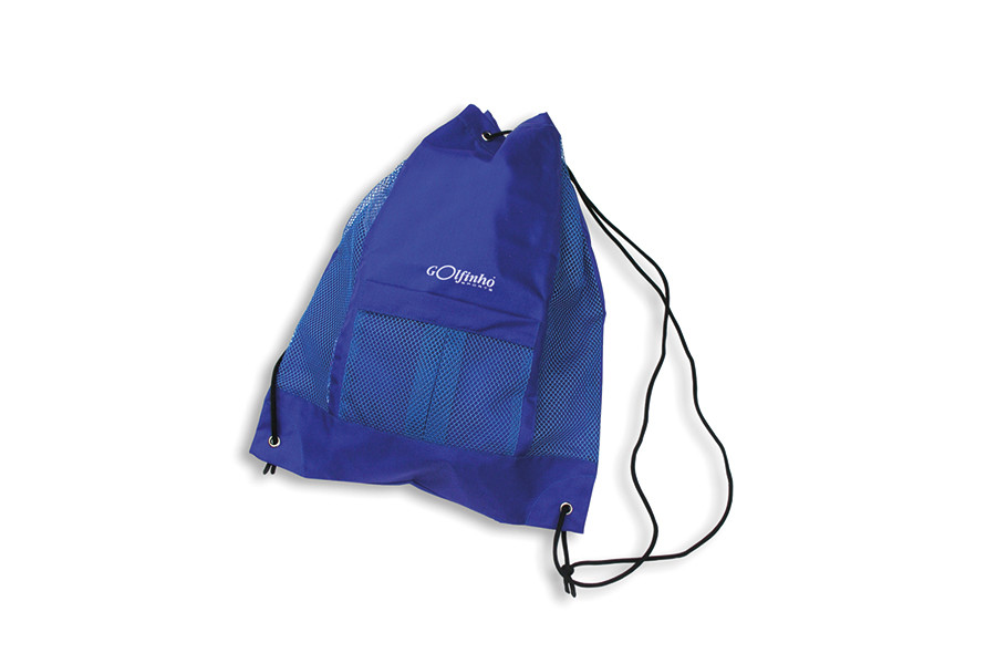 Tornazsák 43x33cm, kék nylon, szellőzö hálós betéttel, behúzózsinórral