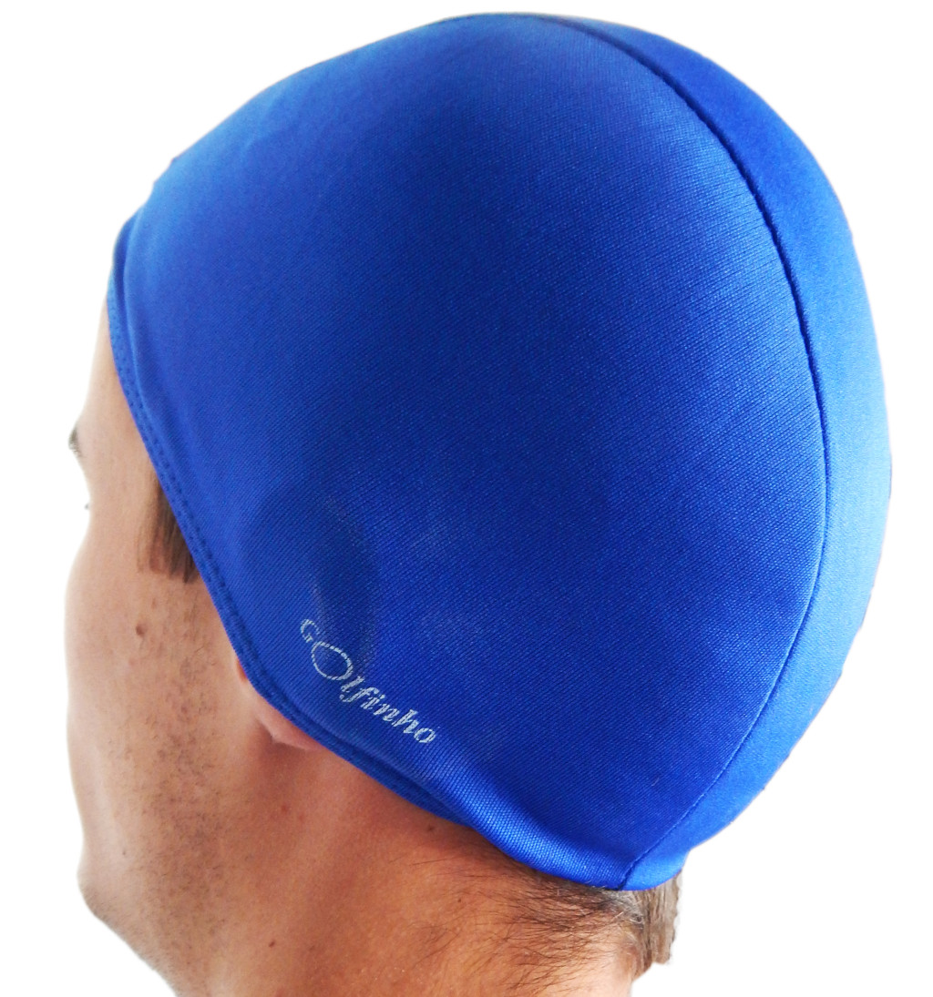 Úszósapka (polieszter, elasztikus textil anyagból, kék színben) Részletek